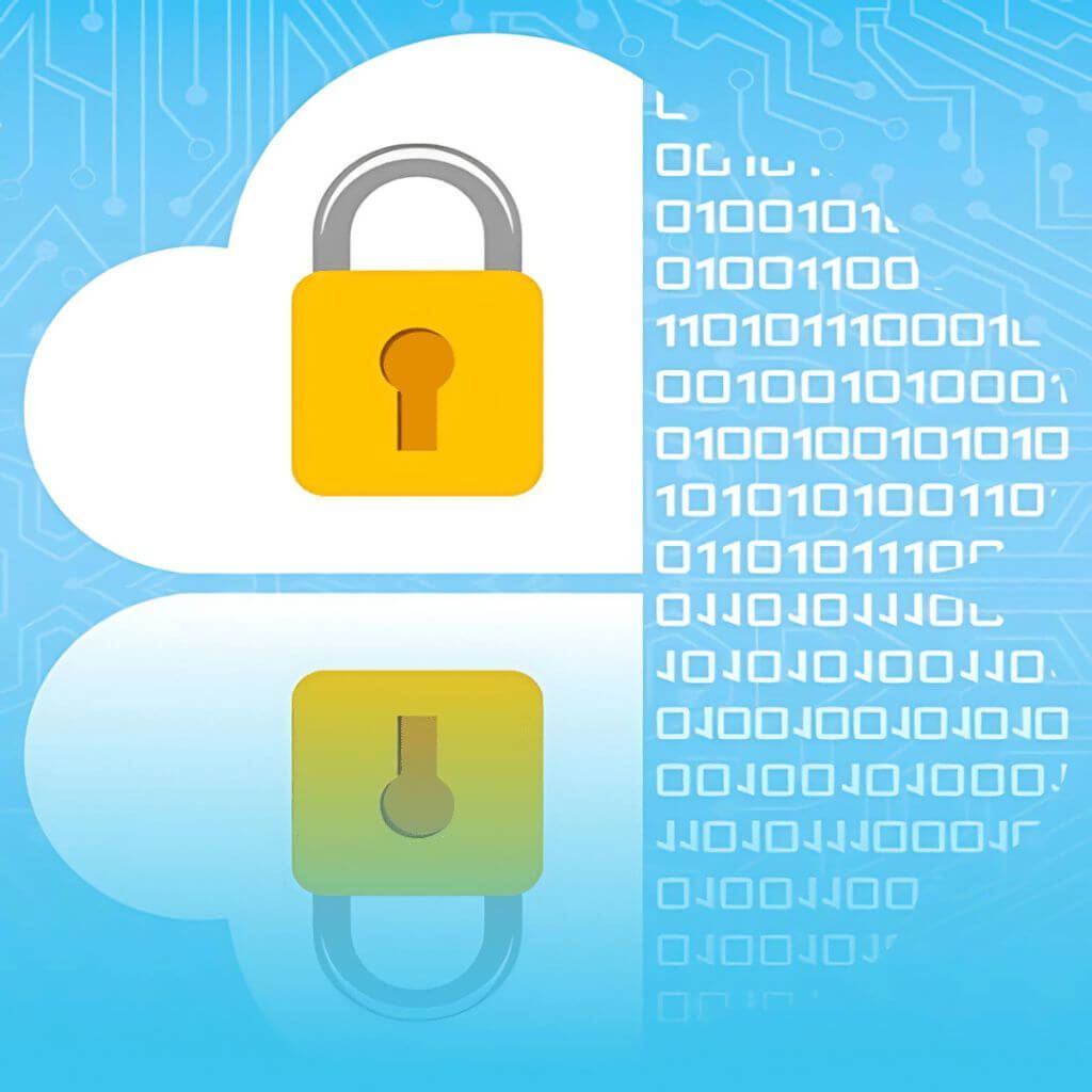 Illustration of a yellow padlock over a white cloud icon with binary code and circuit patterns, representing zSecurity’s Learn Website Hacking from Scratch course.